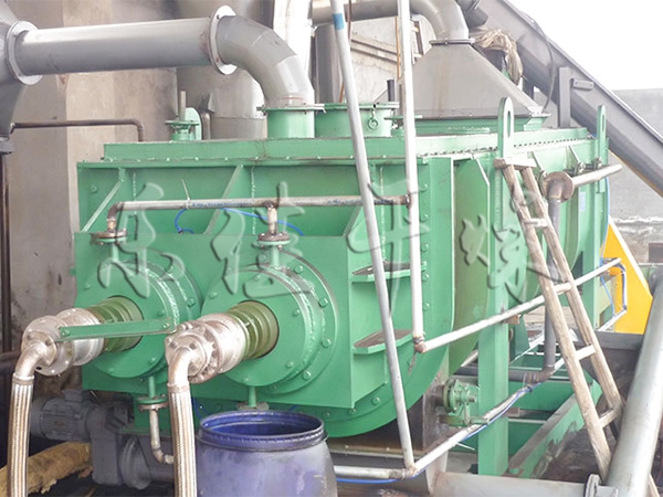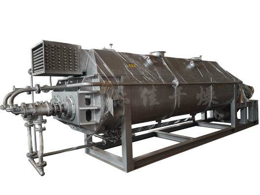 蘋(píng)果渣物料簡(jiǎn)述: 蘋(píng)果渣是新鮮蘋(píng)果經(jīng)破碎壓榨提汁后的剩余物,主要由果皮、果核和殘余果肉組成,含有可溶性糖、維生素、礦物質(zhì)及纖維素等豐富的營(yíng)養(yǎng)物質(zhì),是良好的飼料資源。 蘋(píng)果渣物料的貯存及注意事項(xiàng):(1)蘋(píng)果渣水分含量為23%-30%左右而且是季節(jié)性生產(chǎn),產(chǎn)量又很集中,極易變質(zhì),需及時(shí)加工生產(chǎn)。 (2)蘋(píng)果渣在貯存運(yùn)輸時(shí)應(yīng)注意低溫、通風(fēng)、干燥。 蘋(píng)果渣污泥干燥機(jī)的工作原理: 空心軸上密集排列著楔型中空漿葉,熱介質(zhì)經(jīng)空心軸流經(jīng)漿葉。單位有效容積內(nèi)傳熱面積很大,熱介質(zhì)溫…